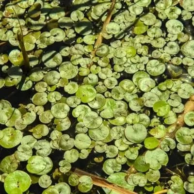 Similar to a tiny water lily, frogbit has small round leaves and delicate white flowers. It provides great cover for frogs and helps keep pond water clean and clear.